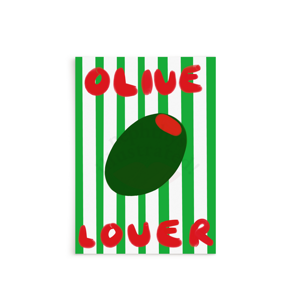 We all know an Oliver lover! A bold and striped design that captured hearts late in 2023. A testament to our love for olives, this standout artwork has become a favorite among olive enthusiasts.