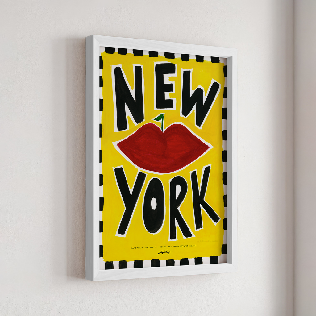 A bold, yellow print that pays homage to the city that never sleeps. Originally painted with gouache. *Just a heads up: because of the border style on this print, it will look a little off-centre or uneven inside the frame – that’s exactly how it was designed and part of its unique charm. |