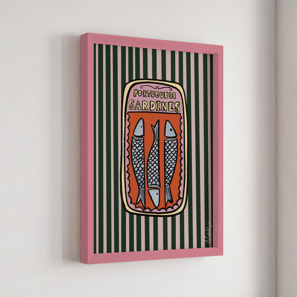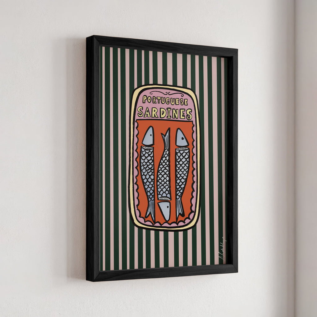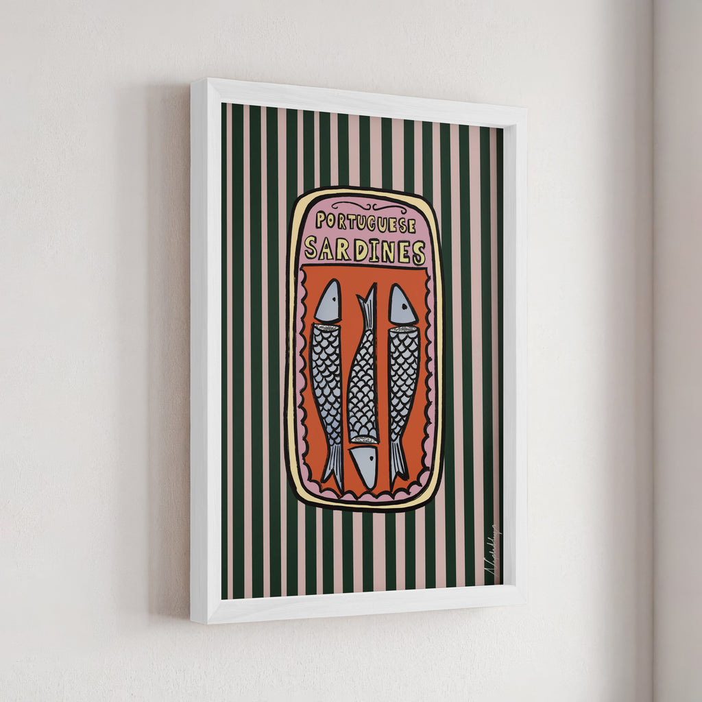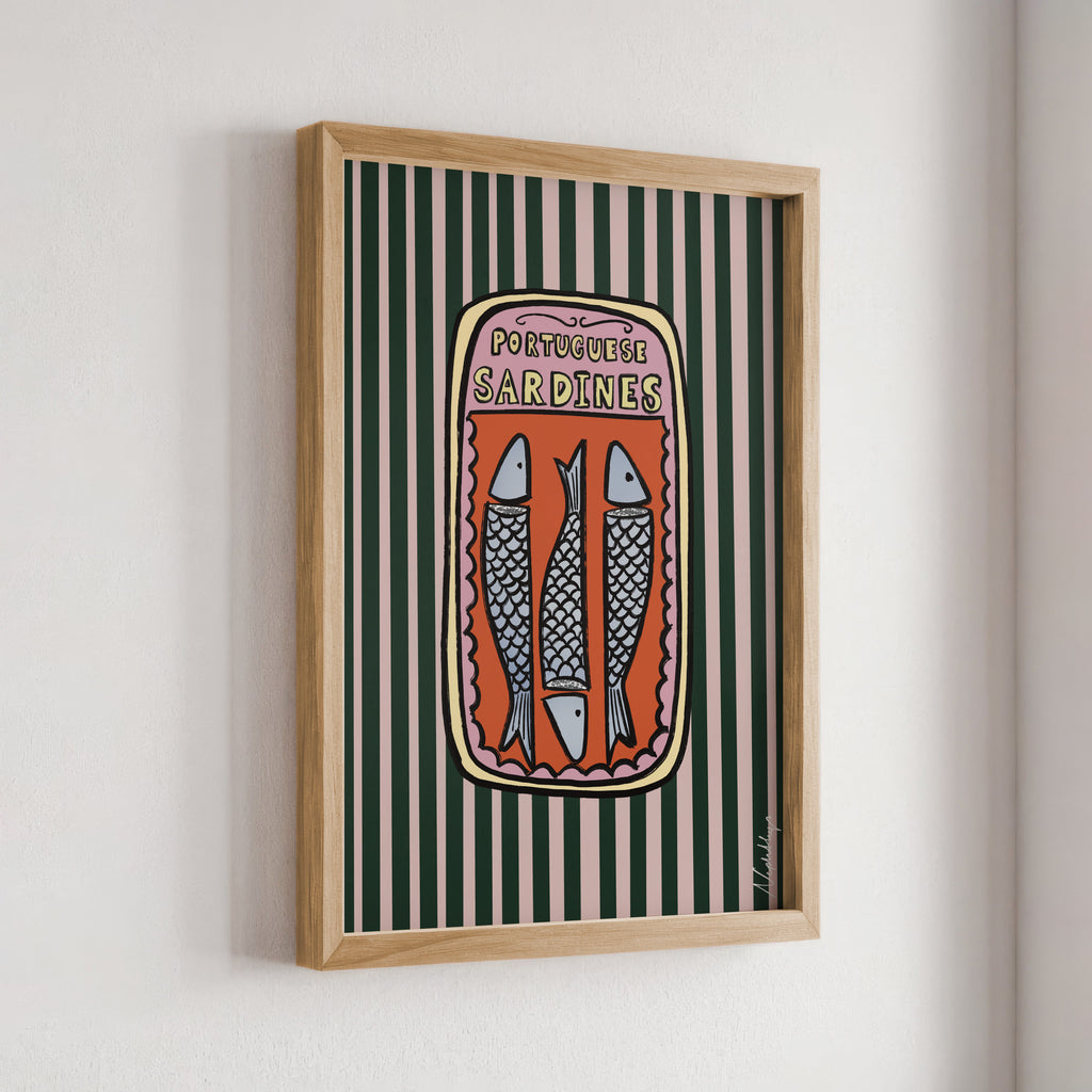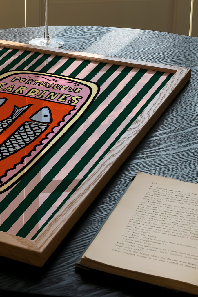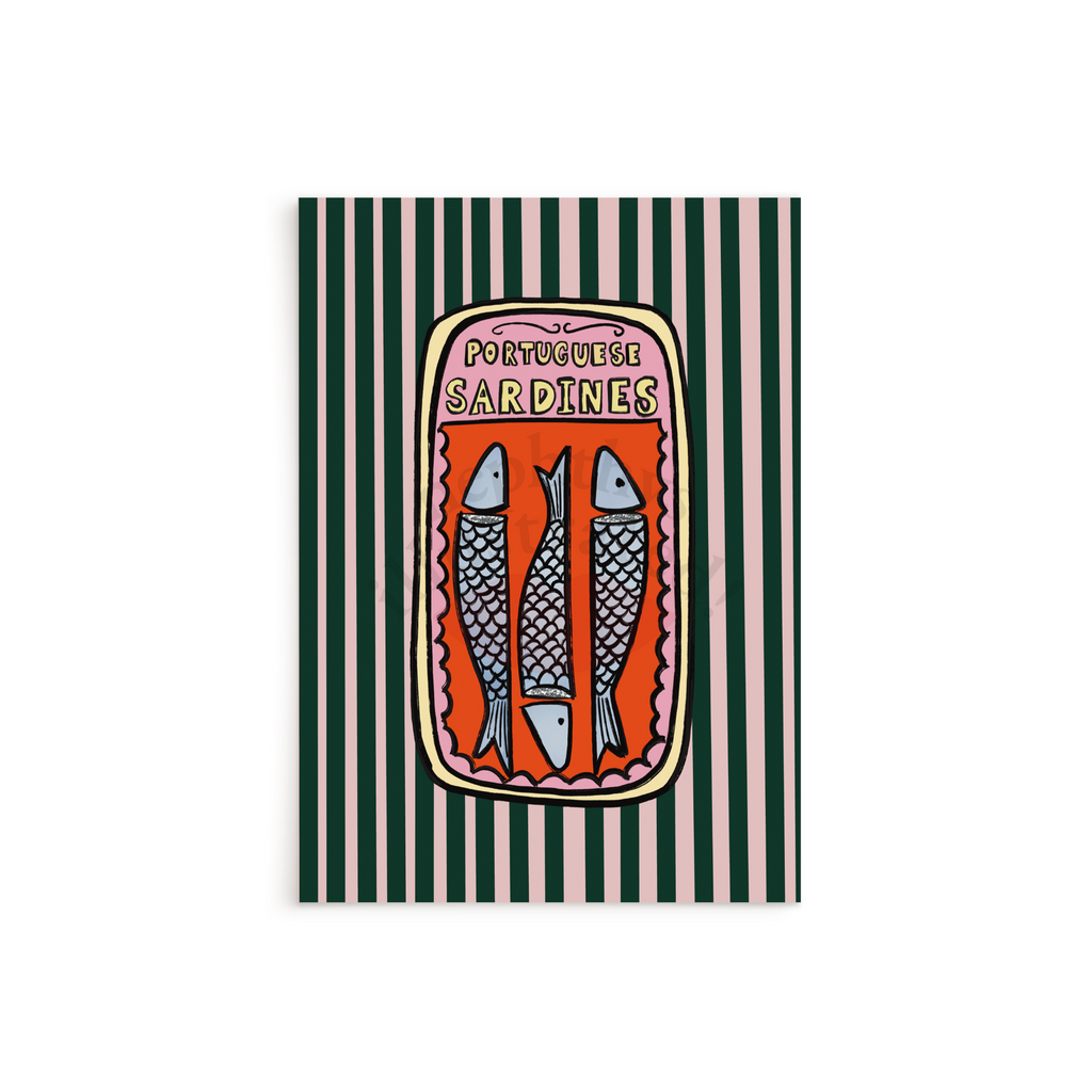 Our Portuguese Sardines Print is a bold and playful homage to the iconic designs found on Portuguese sardines tins that we all know and love and never open!