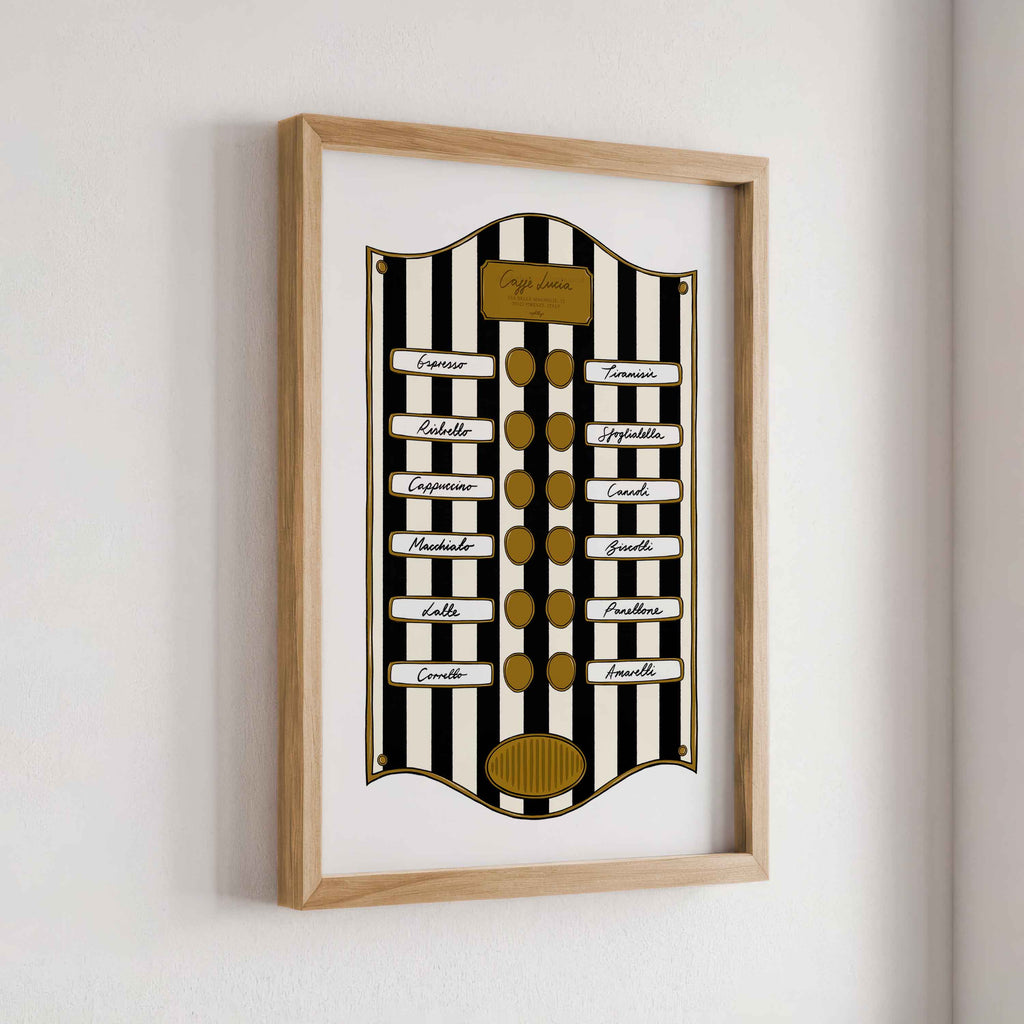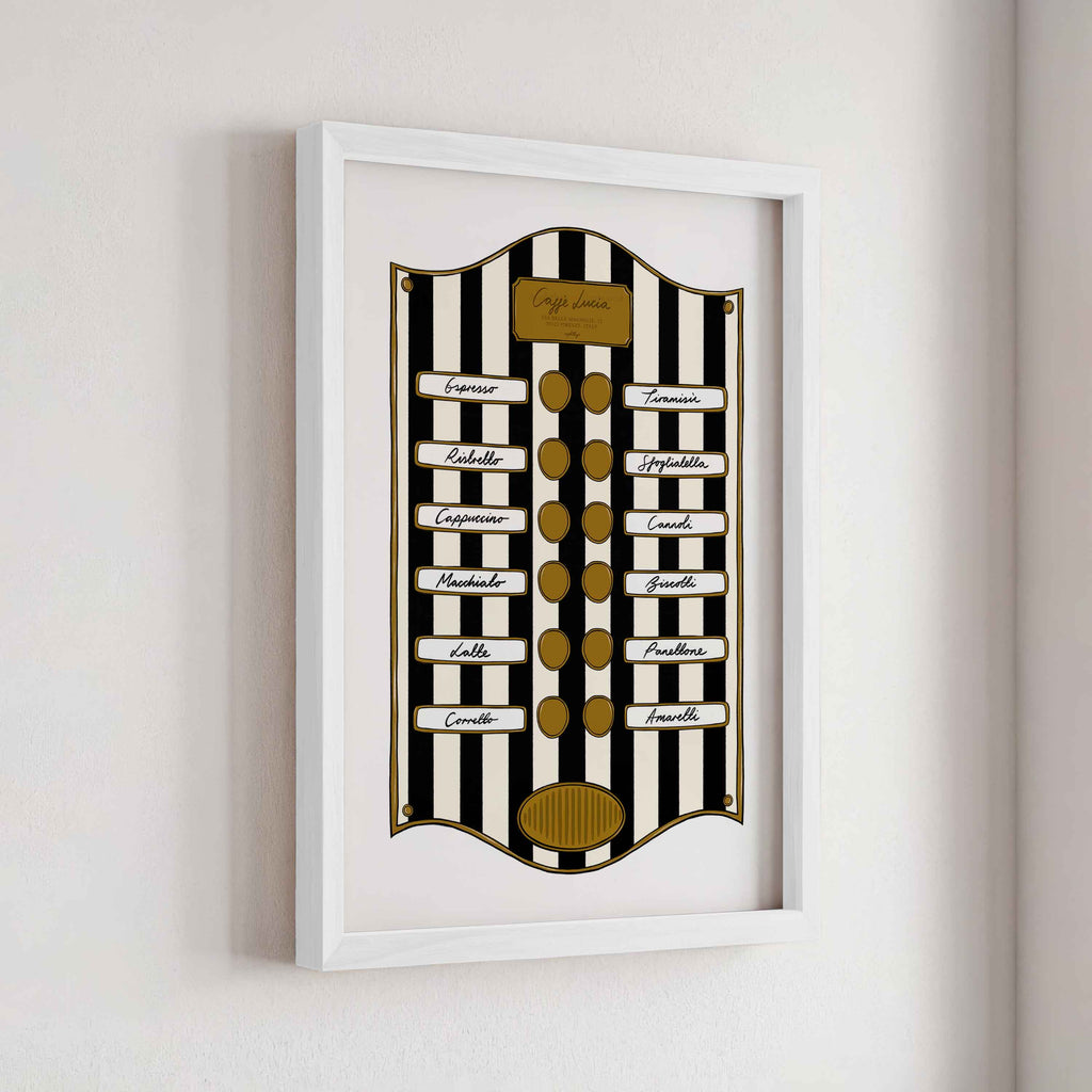 Introducing our Intercom Collection – a set of prints inspired by intercom designs, featuring plaques like Soho Suite, Pizzeria, Le Bar Jardin, and Caffè Lucia. Each print is designed to celebrate the experience of hotel life, from pizza and drink menus to the welcoming atmosphere of a coffee shop.