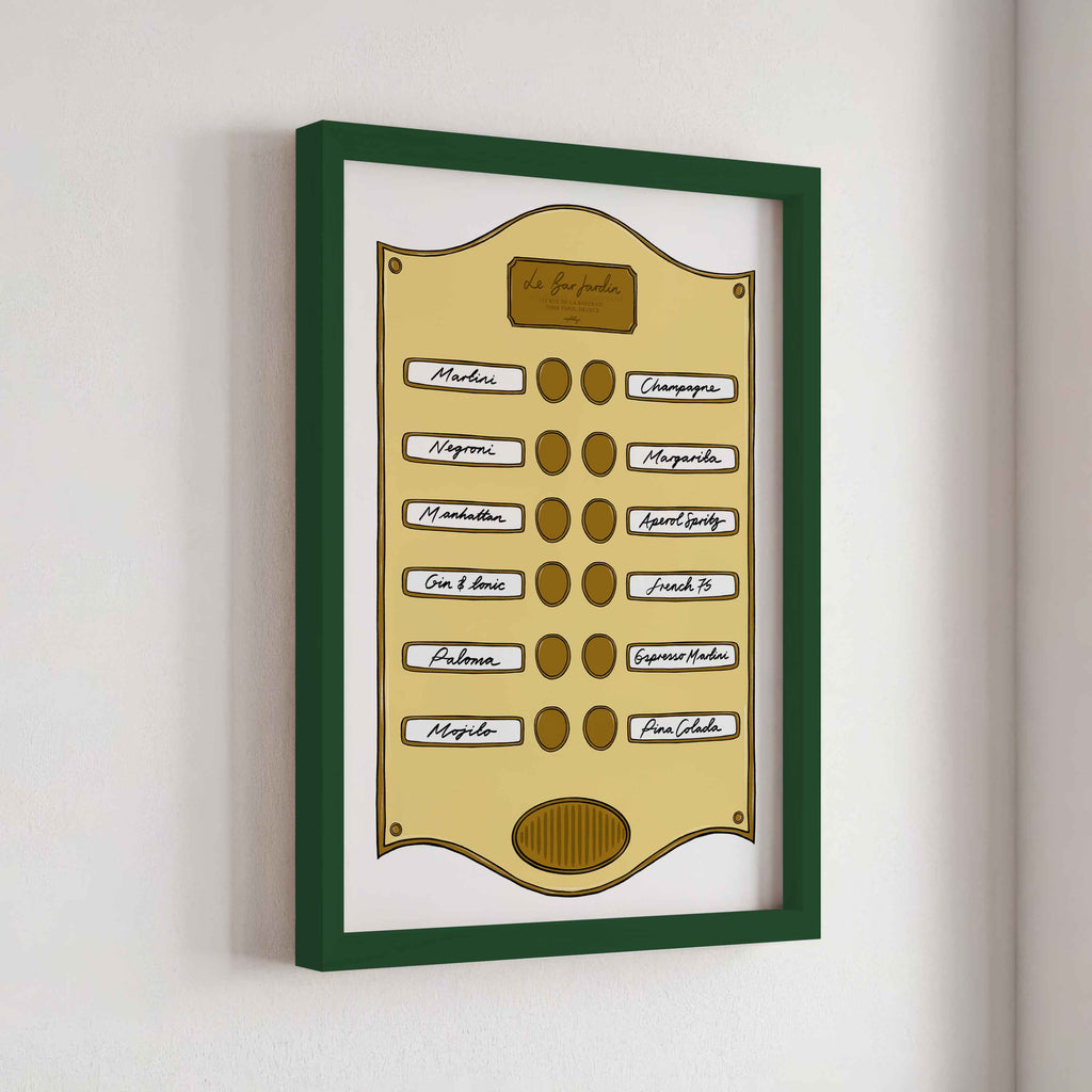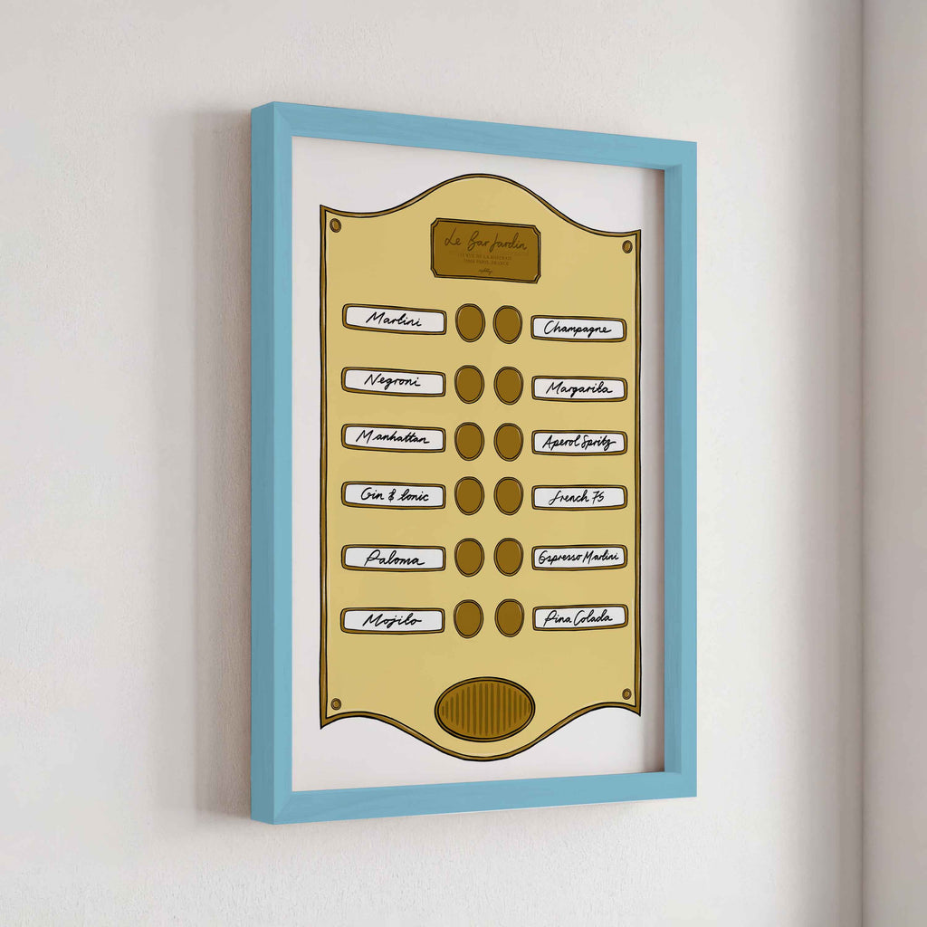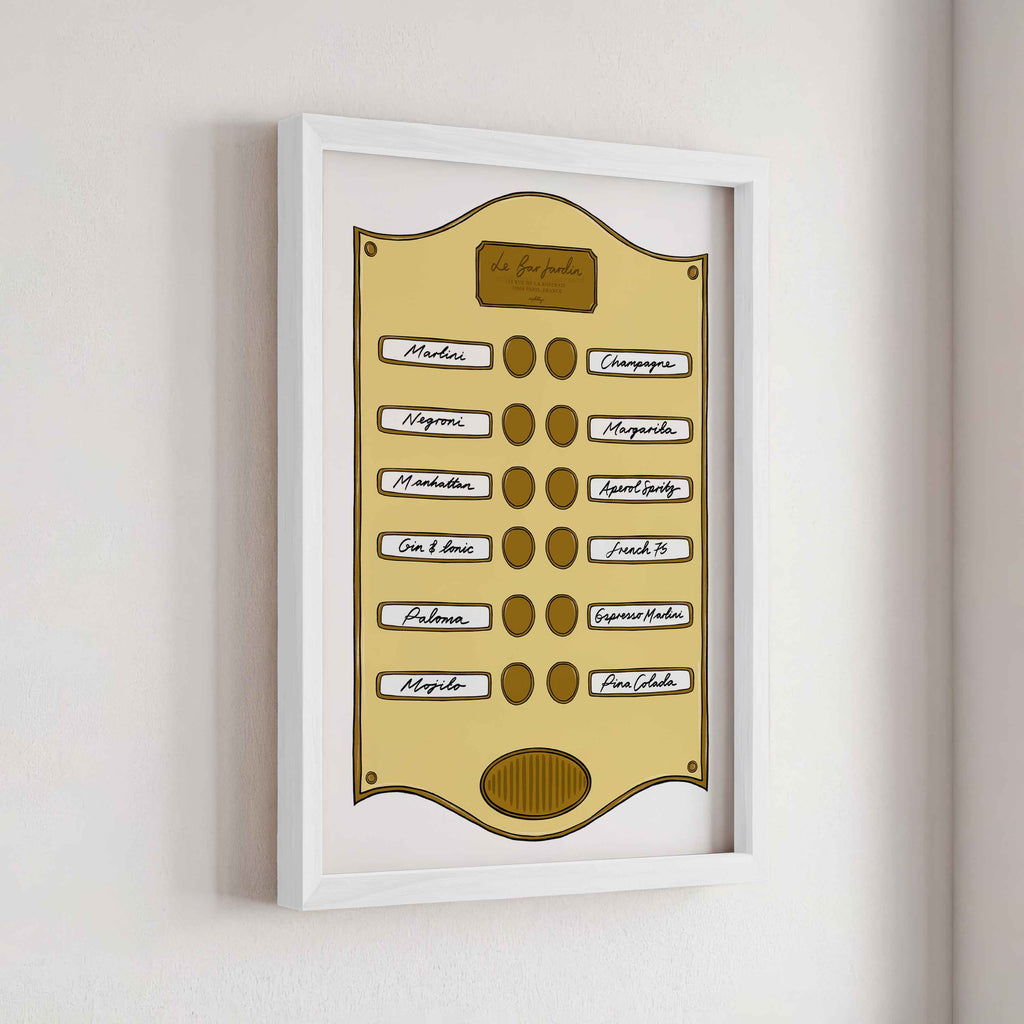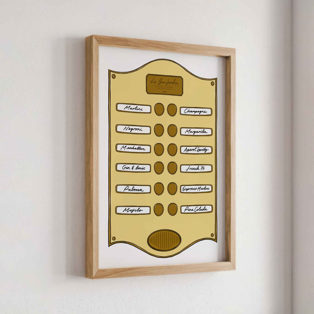 Introducing our Intercom Collection – a set of prints inspired by intercom designs, featuring plaques like Soho Suite, Pizzeria, Le Bar Jardin, and Caffè Lucia. Each print is designed to celebrate the experience of hotel life, from pizza and drink menus to the welcoming atmosphere of a coffee shop.
