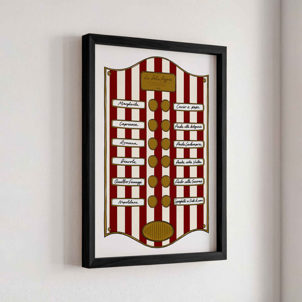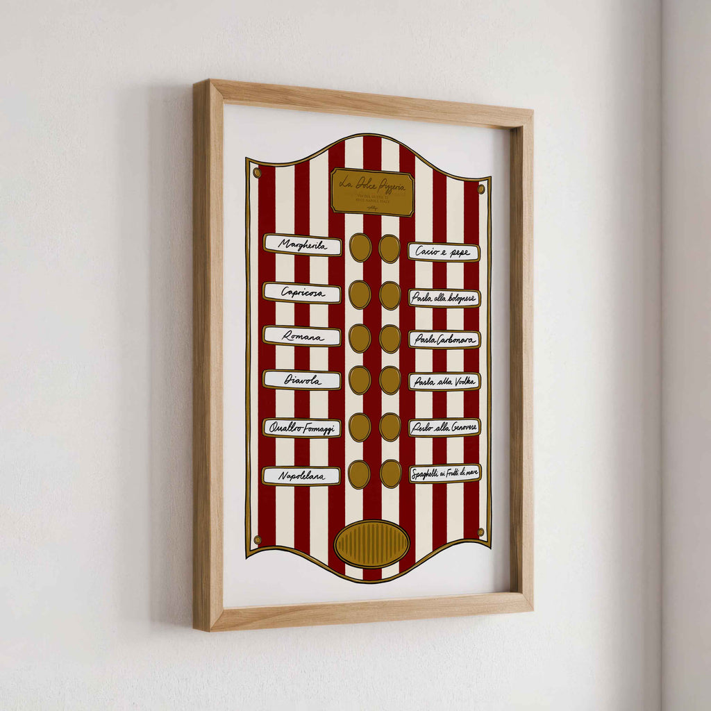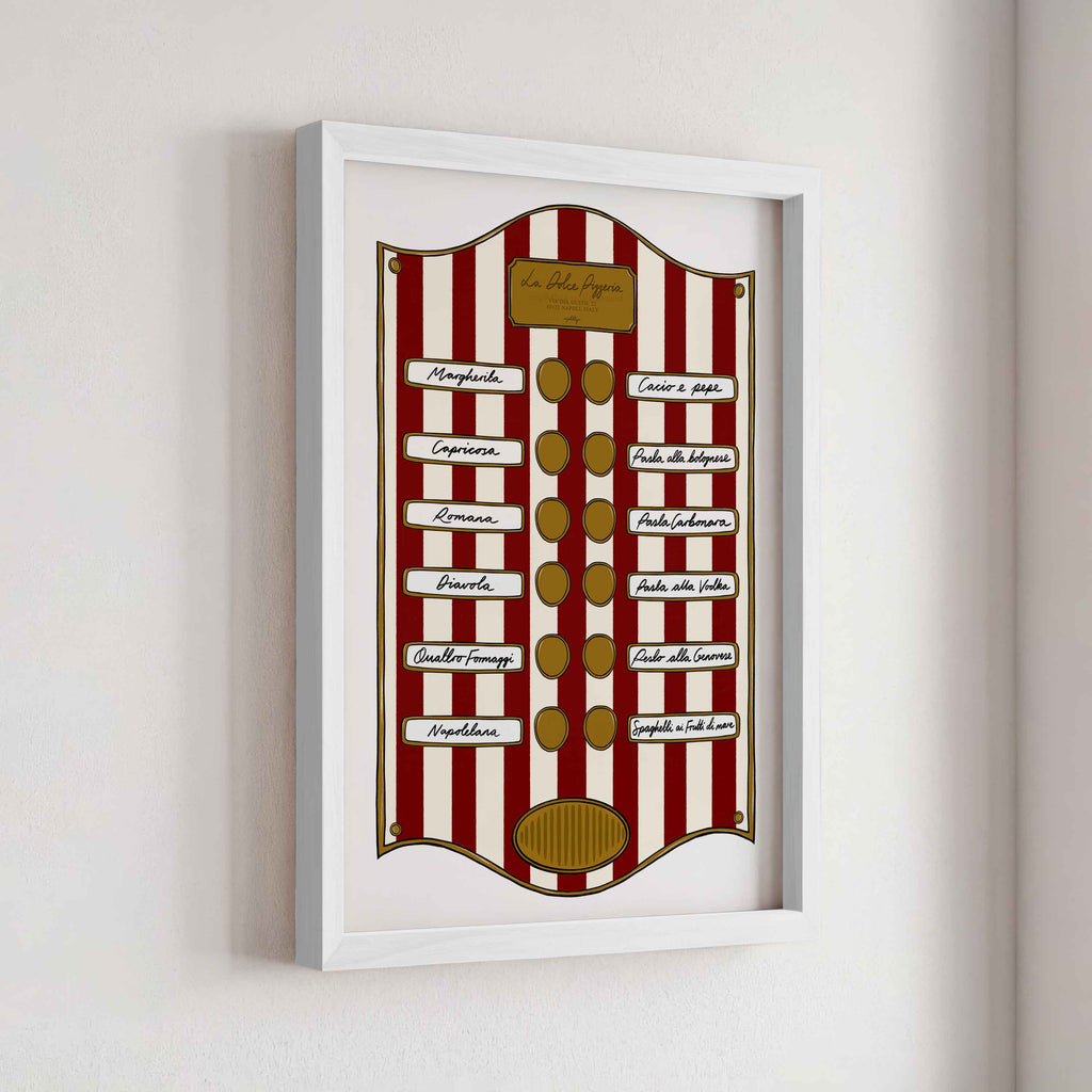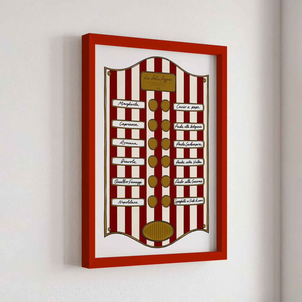 Introducing our Intercom Collection – a set of prints inspired by intercom designs, featuring plaques like Soho Suite, Pizzeria, Le Bar Jardin, and Caffè Lucia. Each print is designed to celebrate the experience of hotel life, from pizza and drink menus to the welcoming atmosphere of a coffee shop.