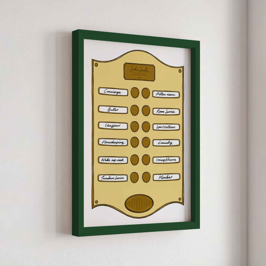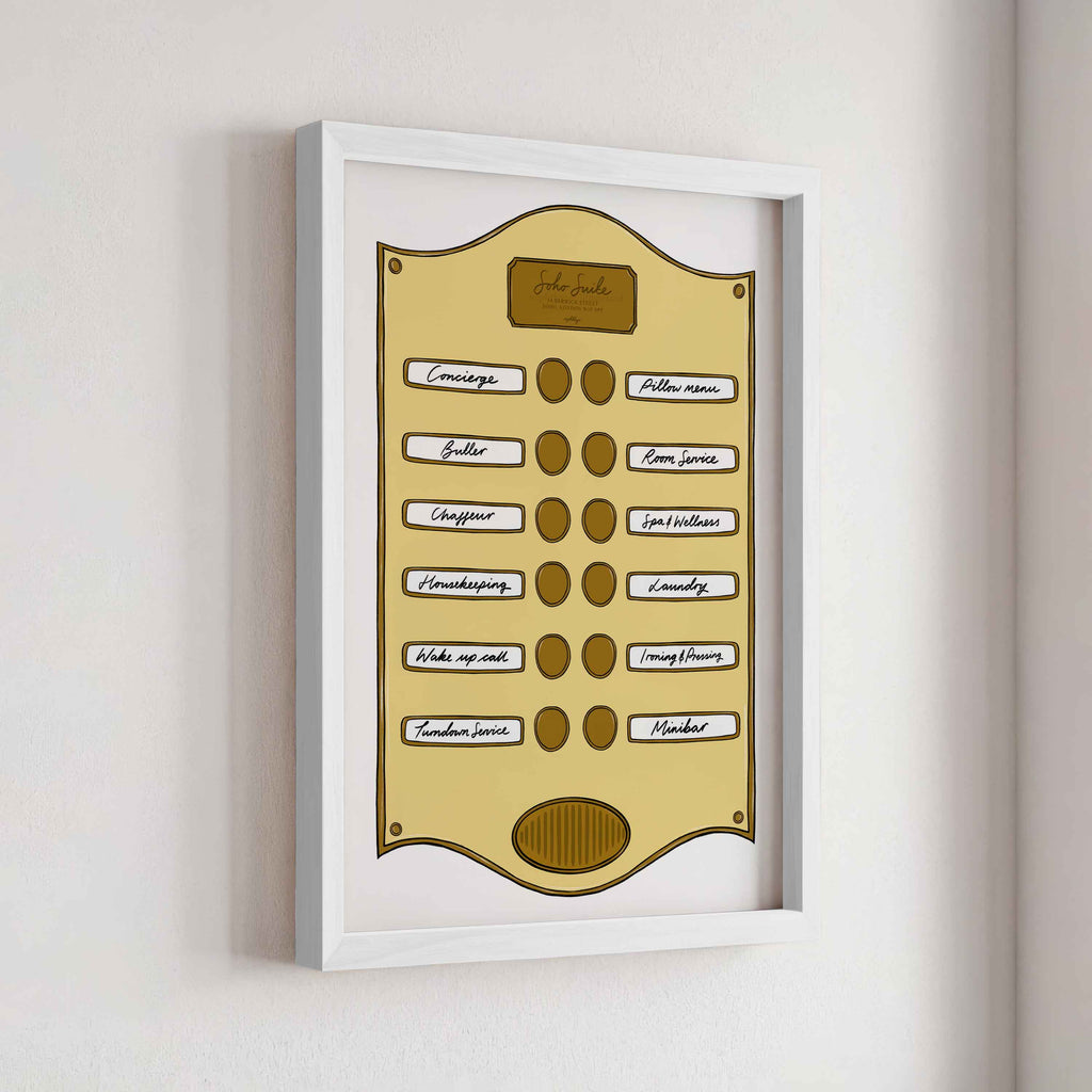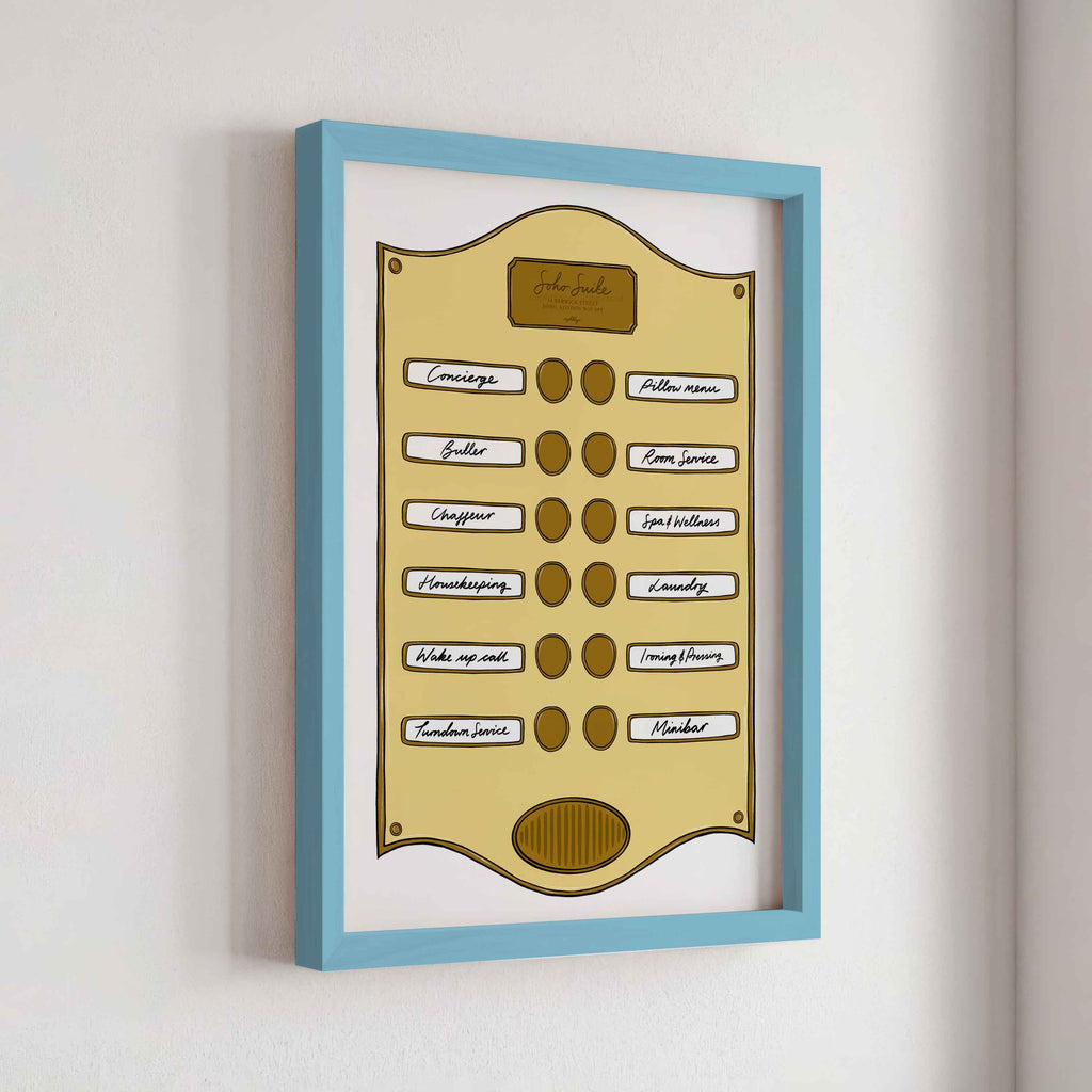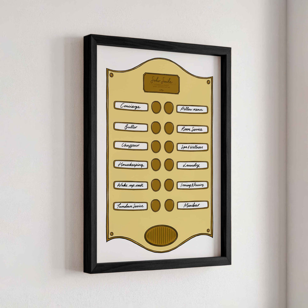 Introducing our Intercom Collection – a set of prints inspired by intercom designs, featuring plaques like Soho Suite, Pizzeria, Le Bar Jardin, and Caffè Lucia. Each print is designed to celebrate the experience of hotel life, from pizza and drink menus to the welcoming atmosphere of a coffee shop.