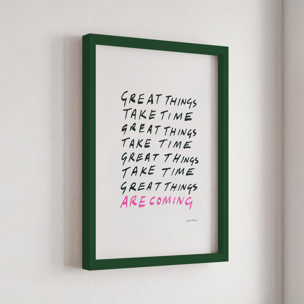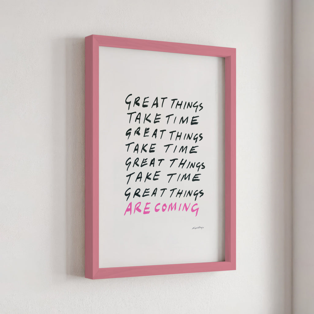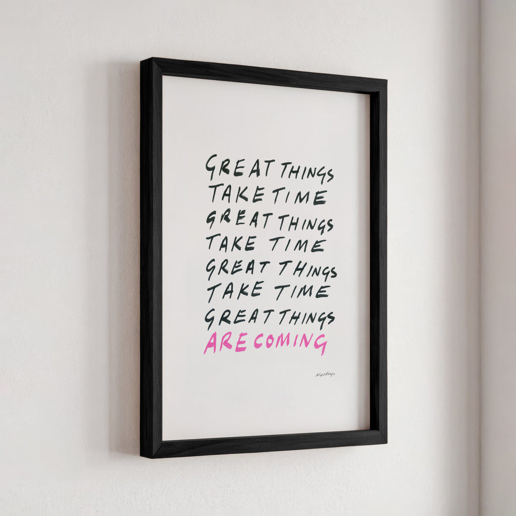 "Great Things Take Time" – A simple reminder that good things come with patience and trusting the process. Ideal for adding a touch of encouragement to any space.