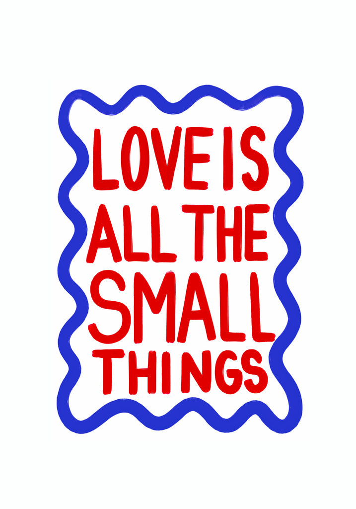 Part of the 2022 "Love Is" collection, these prints feature a simple yet bold design. They capture in words the small, everyday moments of life where love resides. Each print serves as a touching reminder to appreciate the subtle expressions of love that surround us daily.