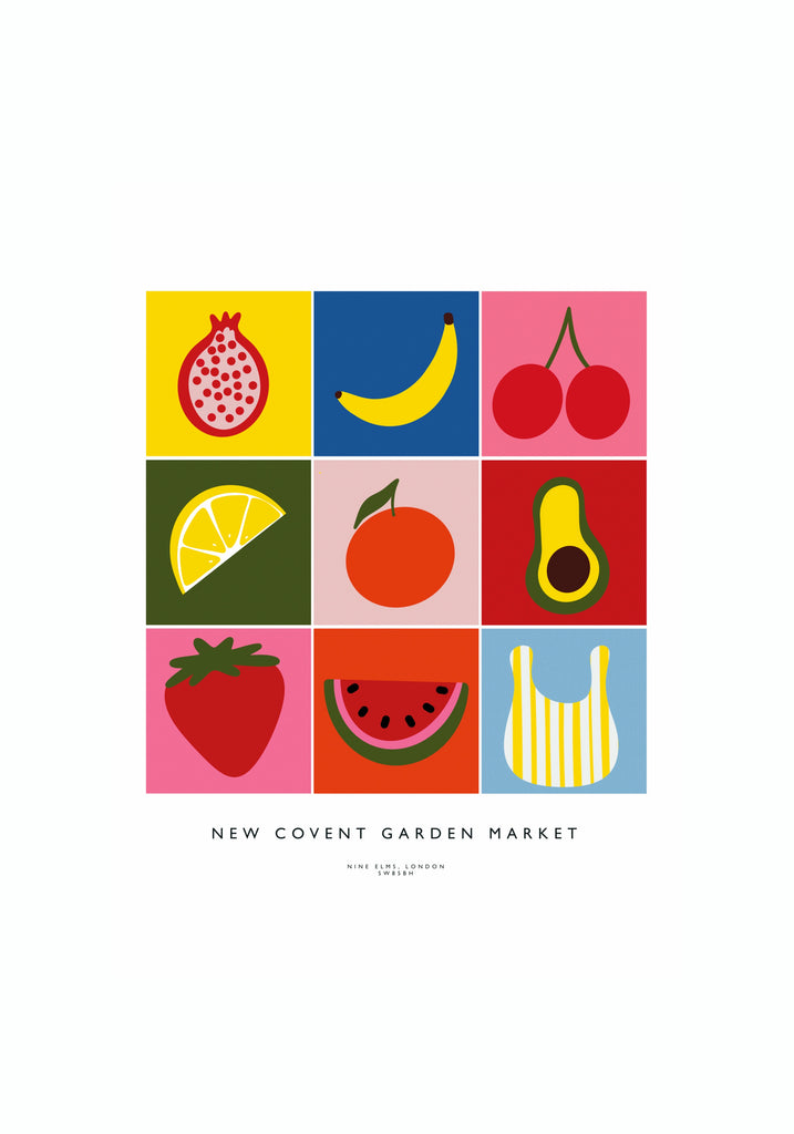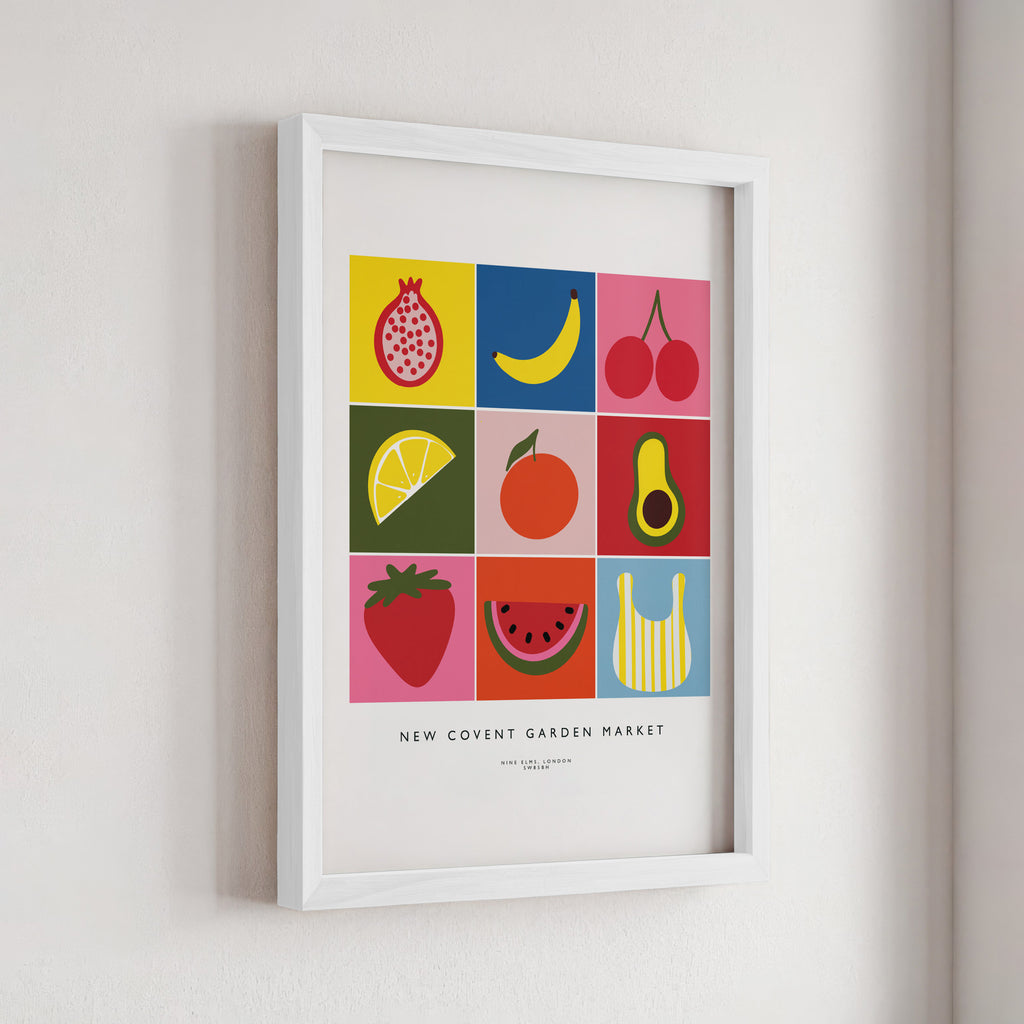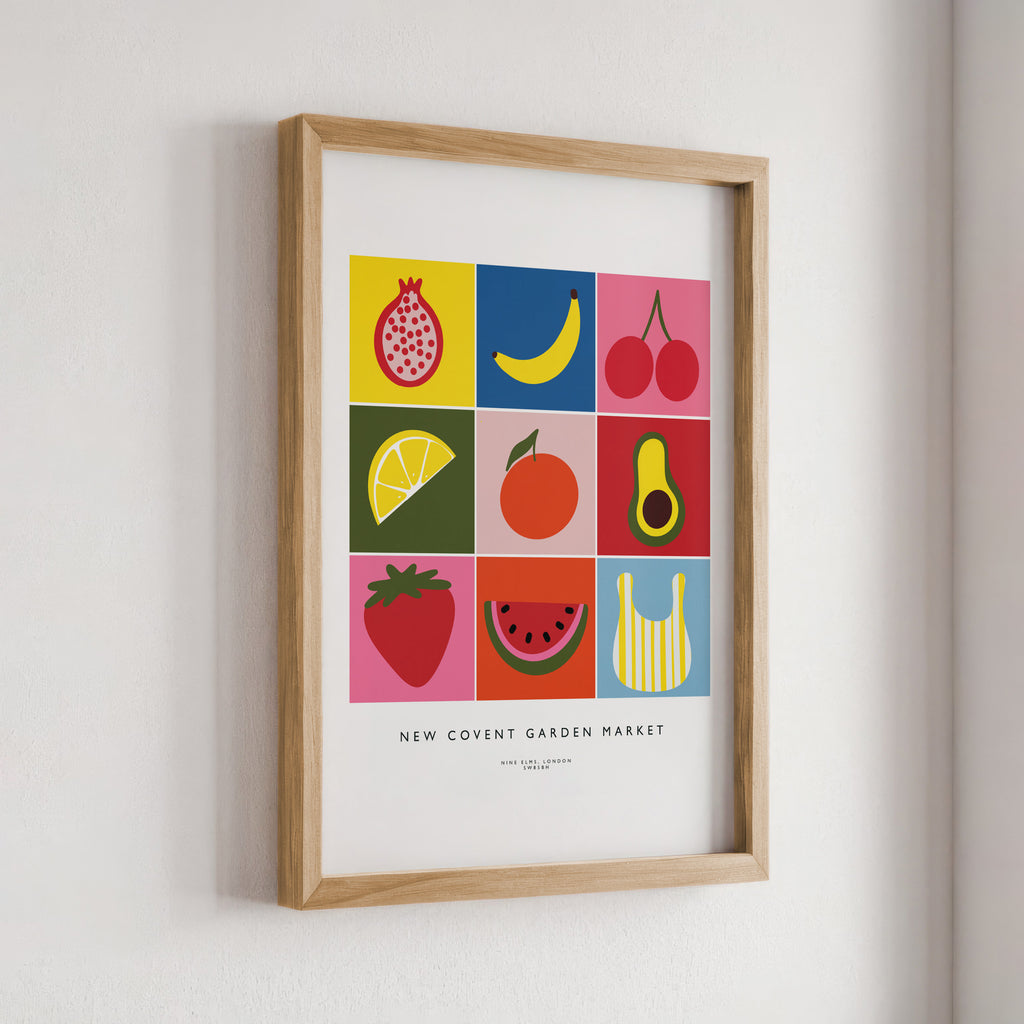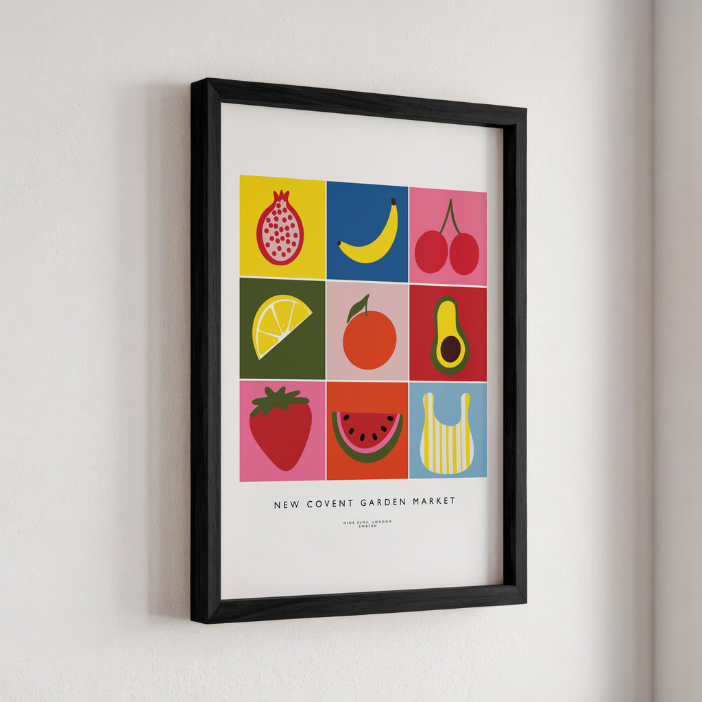 A vibrant print celebrating the charm of London's iconic New Covent Garden Market.